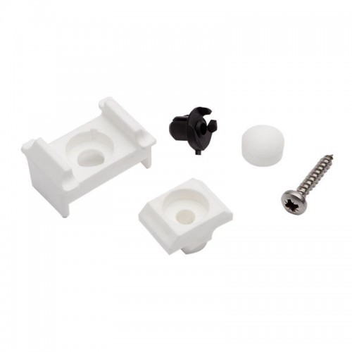 Punktbefestigungsset bestehend aus Gitterzaunklammer, Spreizdübel· Edelstahlschraube, Klemmstück, Stopfen